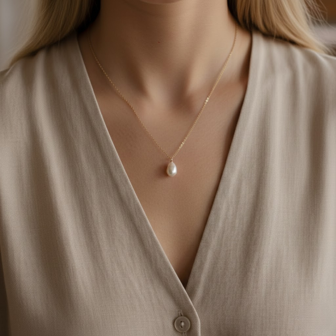 Selma | Håndlaget Halskjede med Naturlig Ferskvannsperle (Barokk)